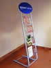 Stelaż wykonany z giętych rur stalowych lakierowanych proszkowo na wybrany kolor. Kieszenie na foldery odlewane z przezroczystego tworzywa sztucznego.